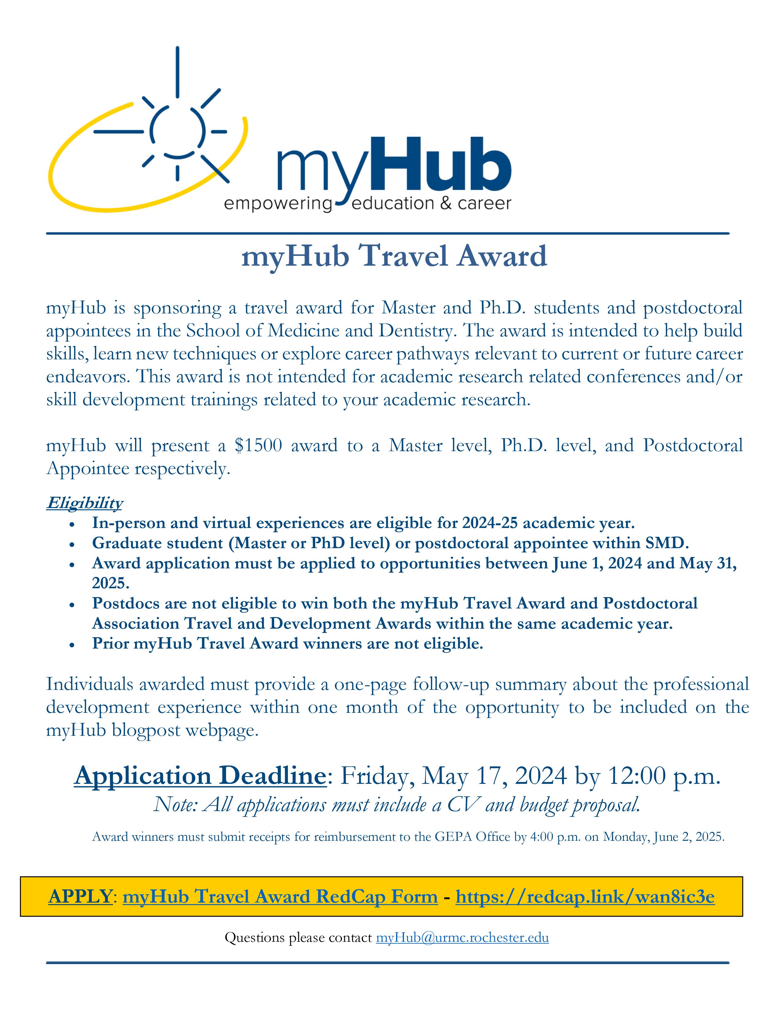 Step 1. Submit a completed Application Form (attached document) along with a copy of your C.V. and copies of your peer-reviewed publications to stephanie_scoville@urmc.rochester.edu by noon on April 17th .